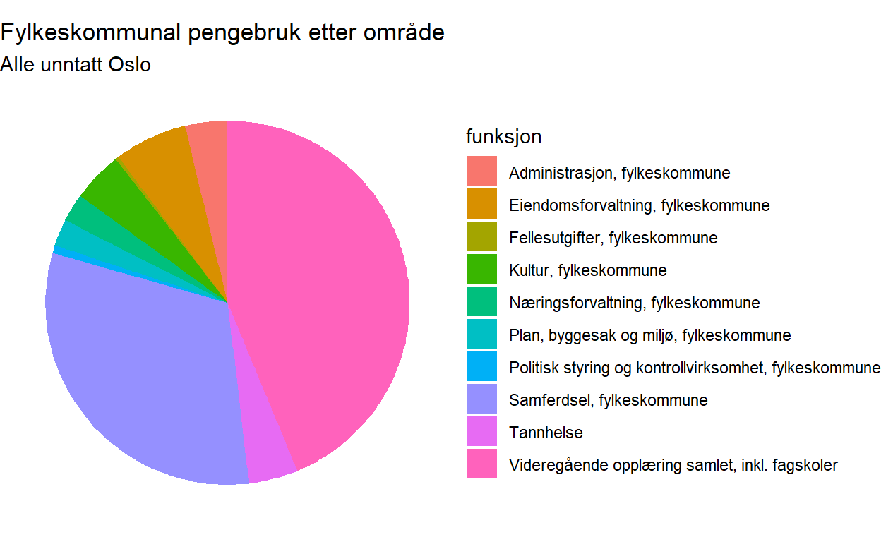 Presentasjon av ggplot2-kode for å visualisere andeler som kakediagram, vaffeldiagram og stabla søylediagram