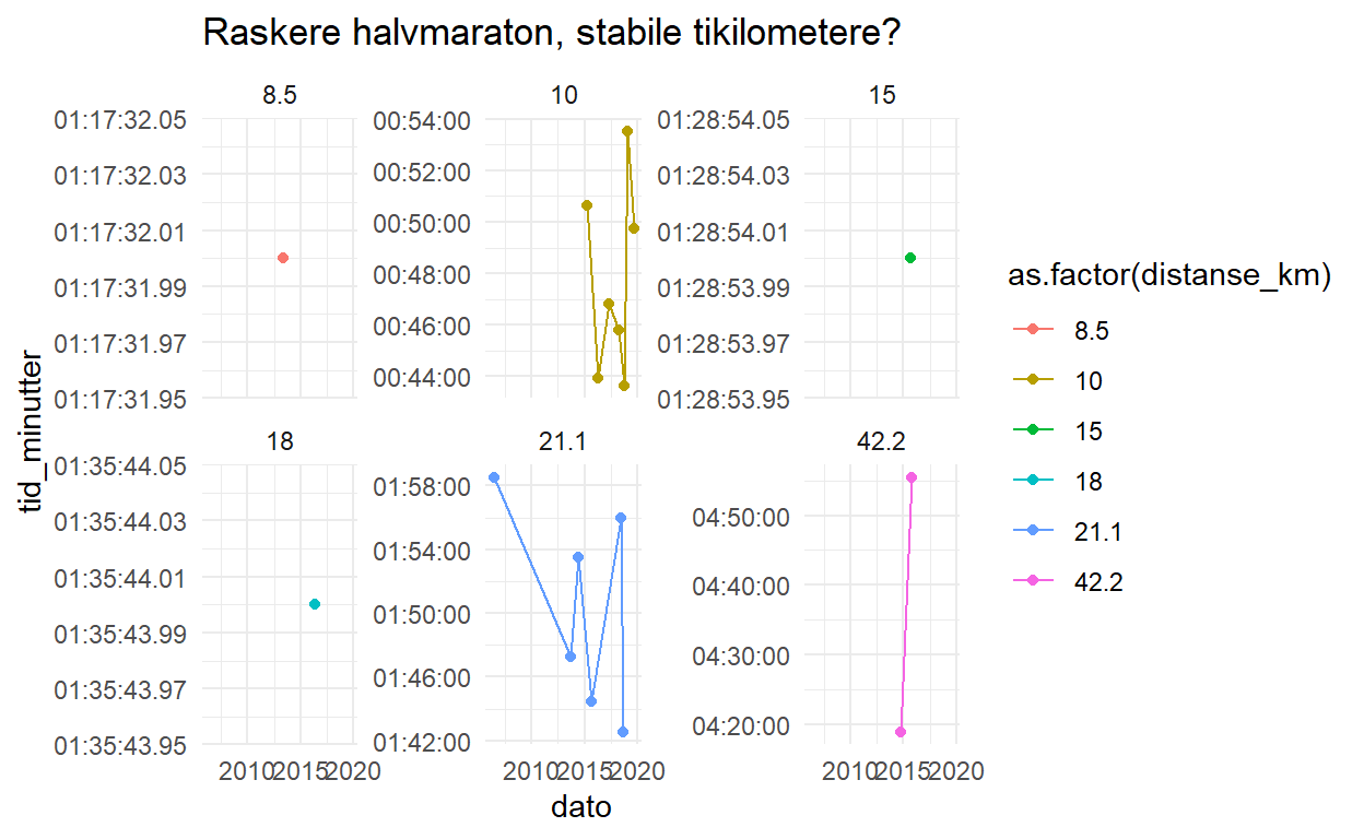 labs(title = "Lengre tid på lengre løp")
