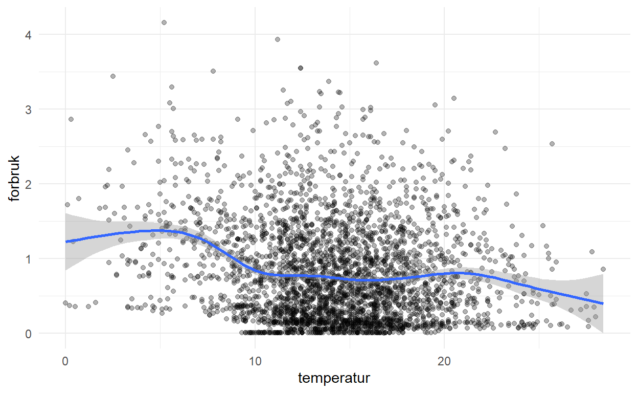 ggplot(data = temp, aes(x = temperatur, y = forbruk)) +